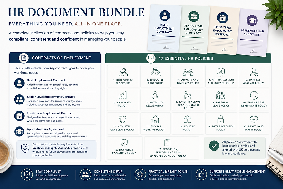 The full set of HR Documents has everything you need in one place to manage your people effectively, consistently and in line with UK employment law.